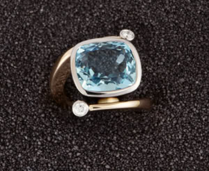 Damenring in Gelb- und Weissgold 750, Aquamarin (Kundenstein),