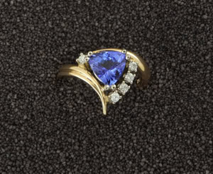Verlobungsring in Gelb- und Weissgold 750, Tansanit-Trillant 1,88 ct.