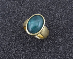 Damenring in Gelbgold 750, blaugrüner Turmalin 12,15 ct.