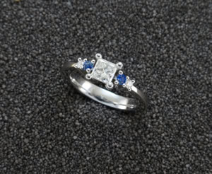 2 Saphire 0,16 ct. und 2 Brillanten 0,06 ct. FG/vs
