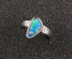 grau Opal 7 x 9 mm, 1,17 ct. und ein Brillant 0,03 FG/vs