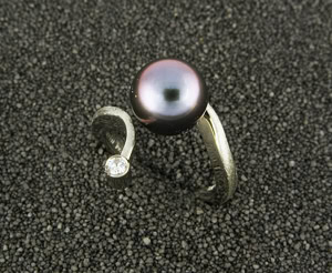 Damenring in Weissgold 750, Tahitiperle D= 10,2 mm