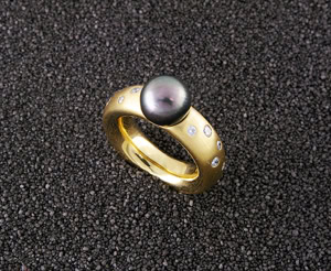 "Nuit dans Tahit" Damenring in Gelbgold 750, Tahitiperle D= 9,0 mm