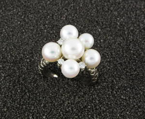 "Terra" Damenring in Weissgold 750, 6 Akoyaperlen