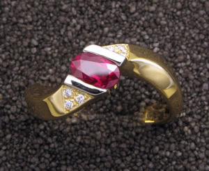 "Swing" Damenring, Gelbgold 750, Rubin im Brillantschliff 0,34 ct.