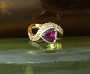 Damenring in Rot- und Weissgold 750, violetter Saphir 1,91 ct,
