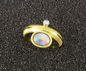 grau Opal 7 x 9 mm, 1,17 ct. und ein Brillant 0,03 FG/vs