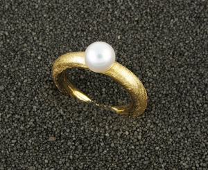 „Spirit“ Damenring in Gelbgold 750, Südseeperle mit perfektem Lüster,