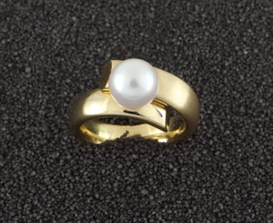 "Nuit dans Tahit" Damenring in Gelbgold 750, Tahitiperle D= 9,0 mm