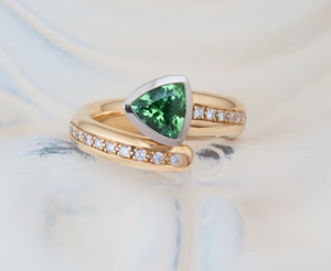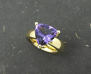 Verlobungsring in Gelb- und Weissgold 750, Tansanit-Trillant 1,88 ct.