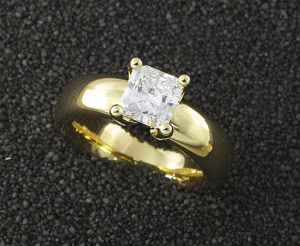 Solitär, Gelbgold 750, Asscher-Diamant 2,03 ct. G/si
