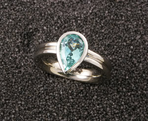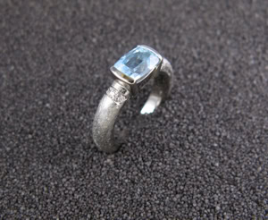 Damenring in Weissgold 750, Aquamarin (Kundenstein),
