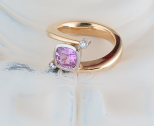 Damenring in Weiss- & Gelbgold 750, pinke Saphir 1.30 ct.
