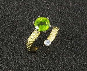 Peridot D= 9,0 mm und Brillant 0,12 ct. FG/vs