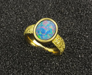 Damenring in Gelbgold 750, Opal-Doublette 9 x 11 mm