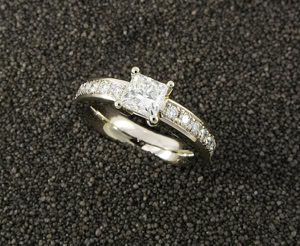 Verlobungsring in Weissgold 750, Princess-Diamant 0,70 ct. F/vs2,